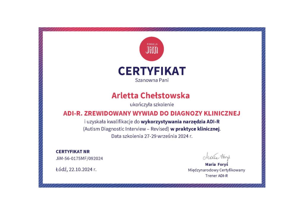 Studia Podyplomowe: Autyzm. Edukacja i rewalidacja osób ze spektrum autyzmu, Instytut Studiów Podyplomowych Wyższej Szkoły Nauk Pedagogicznych w Warszawie.
